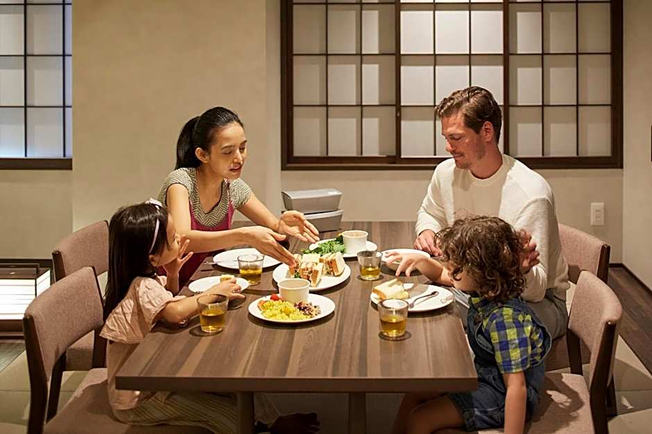 The well-equipped kitchenette features a refrigerator, kitchenware, a microwave and an electric kettle. The spacious family room offers air conditioning, tatami, as well as a private bathroom featuring a bath and a shower. The unit offers 2 beds and 2 futons.